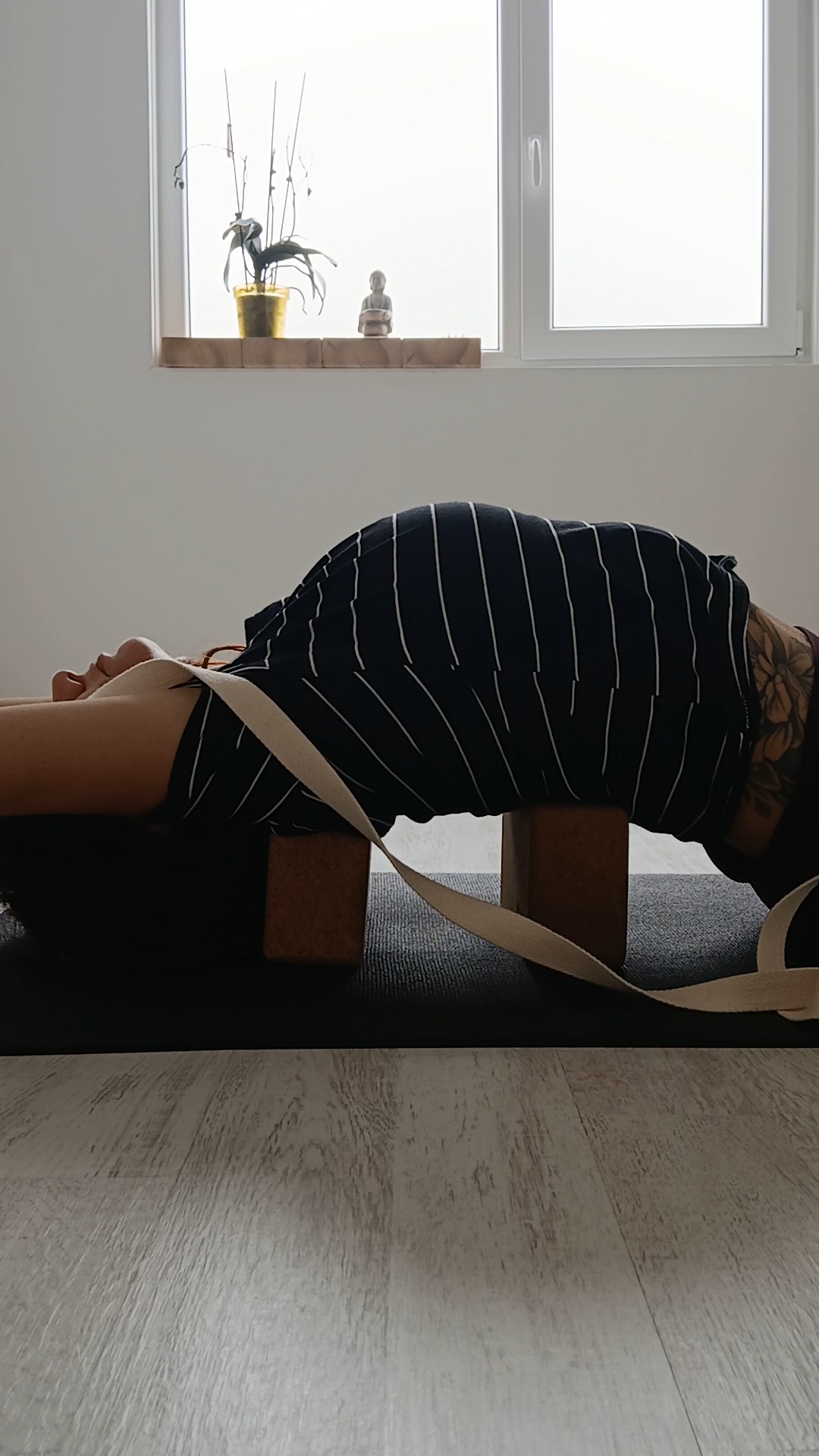 Alivio de tensiones físicas: Muchas posturas restaurativas ayudan a soltar la rigidez de la espalda, el cuello, los hombros y las caderas. Al estar bien apoyado, los músculos dejan de "sujetar" y se aflojan poco a poco, algo muy útil si se pasan muchas horas sentado, de pie o usando el ordenador.